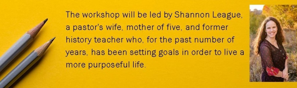 Each participant will receive a Goal-Setting Workbook, and we will spend time planning some goals for the upcoming year. If you’d like to stay for lunch and/or the afternoon session, please note that on your online registration form.